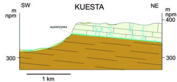 Wapienie Lipskiej Górki są wapieniami chemogenicznymi, czyli takimi, które powstają wskutek wytrącania się węglanu wapnia (CaCO3) z roztworu wodnego. Zawierają one z tego powodu bardzo nieliczne skamieniałości. Jako stosunkowo twarde skały, tutejsze wapienie znacznie lepiej oparły się erozji, niż otaczające je iłowce, przez co górują one nad okolicą. Taką formę geomorfologiczną nazywamy kuestą.