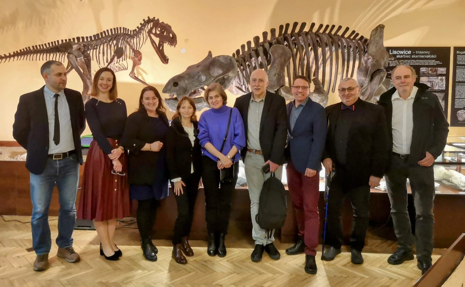 Zdjęcie grupowe pracowników naukowych z Instytutu Paleobiologii w Warszawie, Uniwersytetu w Upssali, pracowników Muzeum Ewolucji w Warszawie i przedstawicieli z Gminy Pawonków.