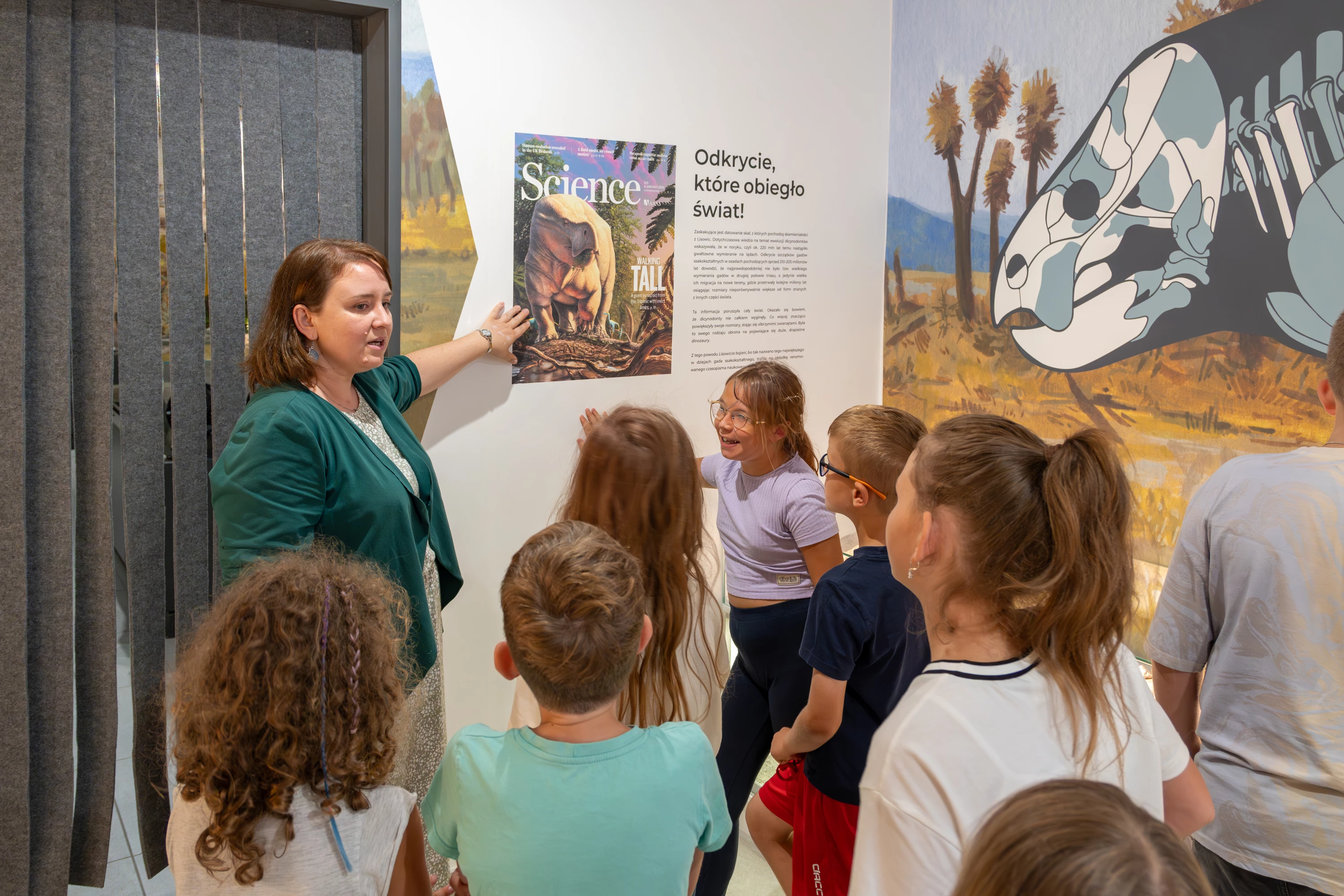 Nowa wystawa, zlokalizowana na pierwszym piętrze budynku, jest nowoczesna i multimedialna. Dzięki windzie jest dostępna również dla osób niepełnosprawnych. Oferuje interaktywne zwiedzanie z przewodnikiem lub z audioprzewodnikiem po pięknie i profesjonalnie zaprojektowanych wnętrzach z wyczerpującymi opisami, unikatowymi ilustracjami, nowoczesnymi grafikami oraz pacami malarskimi przedstawiającymi te niezwykłe zwierzęta kopalne. Wszystko to powstało pod czujnym okiem naukowców: paleontologów prof. Tomasza Suleja i dr Grzegorza Niedźwiedzkiego oraz geologa, dr. Piotra Wojtulka. Całość dopełniają stanowiska multimedialne oraz interaktywne zabawki, które zachęcają do zdobycie wiedzy poprzez zabawę.